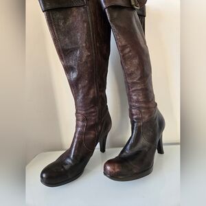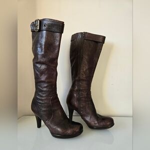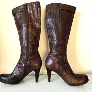 ARNOLD CHURGIN tall brown heeled leather boots. Size 39 (8-8.5)