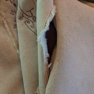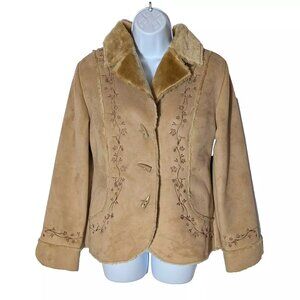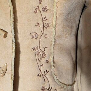 ARSENO CANADA Faux SUEDE & FUR jacket Sz S EMBROIDERIES TOOTH-LIKE buttons A GEM