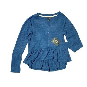 ART CLASS Girls' Henley Peplum Long Sleeve Top Blue