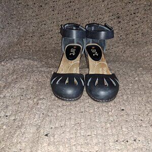 ART COMPANY-Ankle Wrap Sandals-Dark Navy/Black Leather-Sz 37-Near Mint