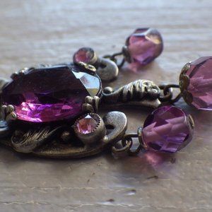 ART NOUVEAU AMETHYST PURPLE GLASS BEADS NECKLACE CZECHOSLOVAKIA SIGNED