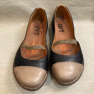 ART Sz 39 Pointy Toe Elastic Strap Leather Colour Blocking Slip On Comfort Shoes. Fun and comfortable. All day easy wear. Neutral colourway. Made in Portugal.