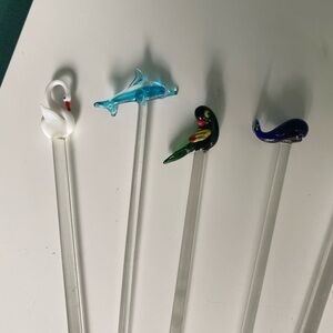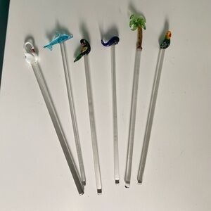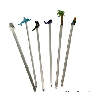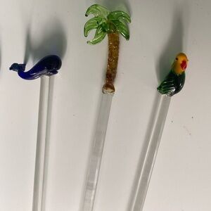 ART glass tropical drink stir stick swizzle