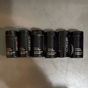 Set of ARTDECO Fixing Powders in sleek black containers. Perfect for a flawless finish.