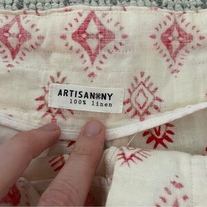 ARTISAN NY 100% Linen High Rise Drawstring Aztec Tribal Shorts Large