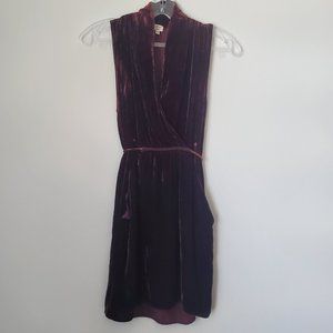 ARTIZIA Rich Silk Velvet Crossover Mini Dress Pockets Tie Belt Evening Boho Chic