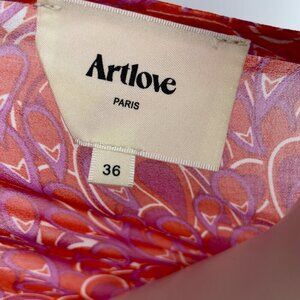 ARTLOVE PARIS Aichata Vibrant Floral Spring Semi-sheer V-neck Flowy Top sz 36