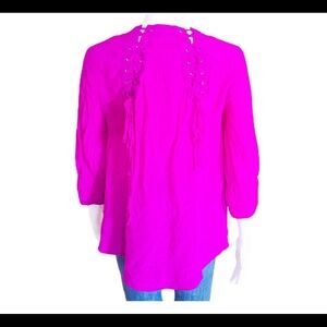 ARYN K (Anthropologie) Lace Up Blouse With 3/4 Length Sleeves Fuschia Pink Size Medium