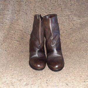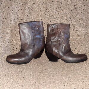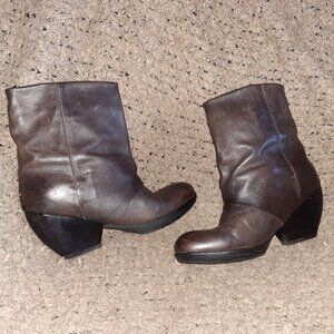A.S. 98-AS 98-Brown/Black Leather-Moto Boots-Side Zip/Snap-Sz 38-Excellent