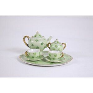 AS IS Miniature porcelain Tea Service Occupied Japan, Vintage Fairy green tea