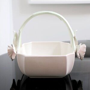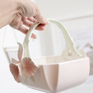 AS IS - REPAIRED Vintage Pink Iris Basket by Fitz & Floyd 1982, Easter Basket