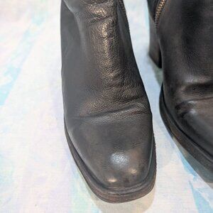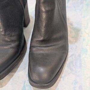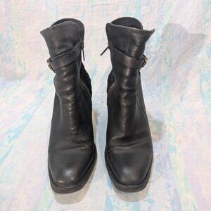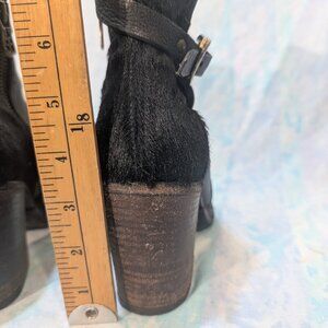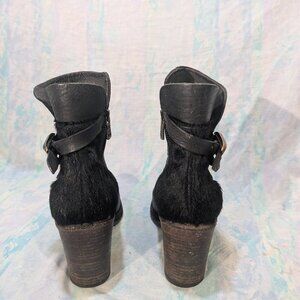 A.S.98 Black Leather & Fur Ankle Boots - Block Heel Buckle Detail
