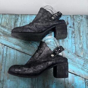 A.S.98 Black Shimmery Leather Slingback Mules Studded Heeled Shoes Size 39