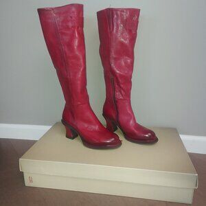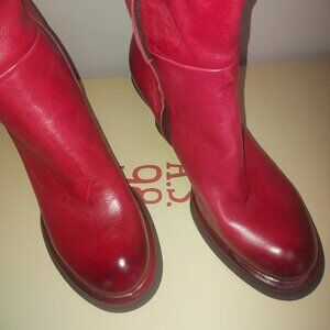 AS98 Knee High Red Italian Leather Boots - Size 38 (7.5/8 US) NWT