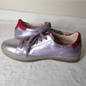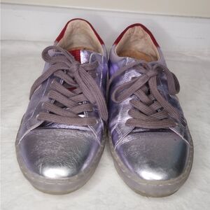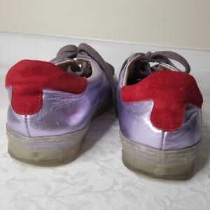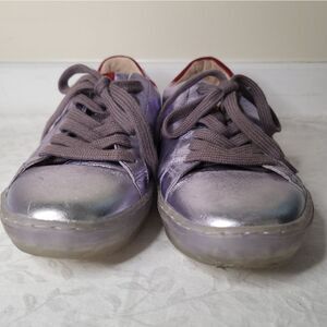 Designer, Made in Italy (2015), clear rubber Handstitched soles, comfort cork insoles, soft cream leather lining, matching lavender purple laces, RARE, Designer, lightly distressed (on purpose like Golden Goose), Great Condition, Size 36 (6).