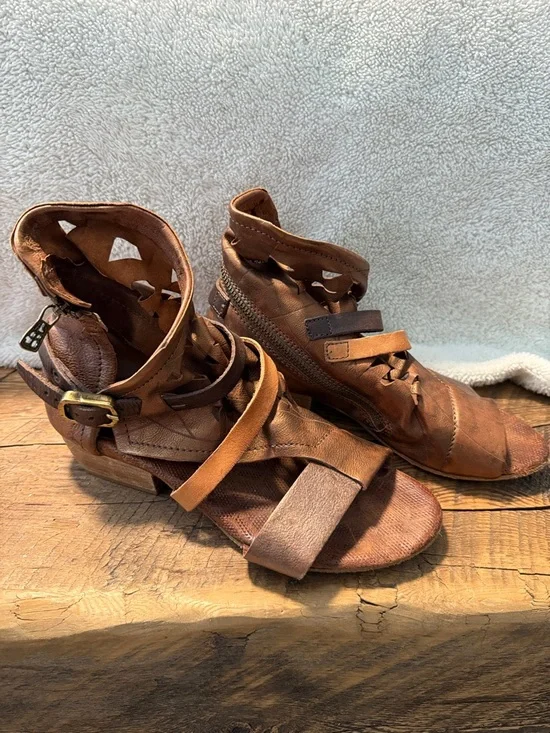 Leather Brown and copper colouring Zip Buckle Gladiator Good used condition