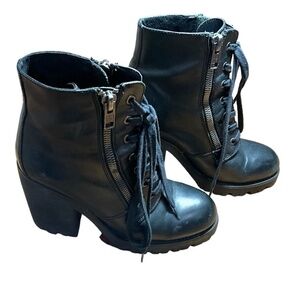 ASH Black Genuine Leather Poker Lace Up Motorcycle Ankle Combat Boot Sz 9