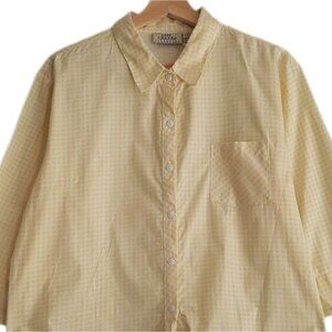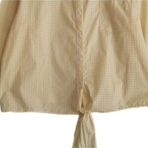 ASH CREEK 100% Cotton Bottom Tie Gingham Shirt Top Yellow Sz L Flawed