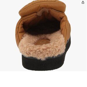 Features: Slip-on style, backless design, puffy nylon uppers, faux-fur lining, loafer/mule design, seamed details, rubber outsole