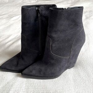 ASH Jasmin Suede Black Blue Wedge Booties Size EU 36