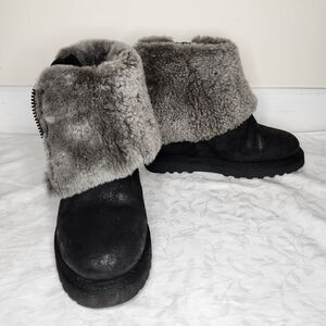 Round toe, ring zipper pull, soft and cozy sheerling lamb fur lining, branded rubber soles, Like New, Size 4.5, Hight (unfolded)-11, Heel-3 1/2"