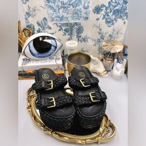 🆕 ASH 🧿 NWOT Black Ziggy Woven Platform Sandals, Sz 38
