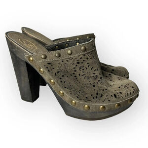 ASH Spicy Cut Out Studded Heeled Suede Clogs