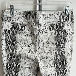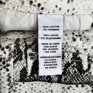 Stylish snakeskin print denim jeans with a 5 pocket design, flared cropped leg and mid rise. Snake print in black and white, cotton elastane stretchy blend for the perfect fit. Machine wash. Perfect for a bold look. I have a snake print denim jacket in my closet for sale that is a match. Bundle and save 🛍️