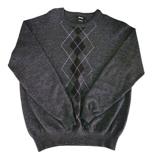 ASHWORTH Charcoal Gray Argyle Merino Wool Sweater classic preppy golf style m