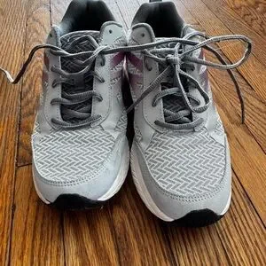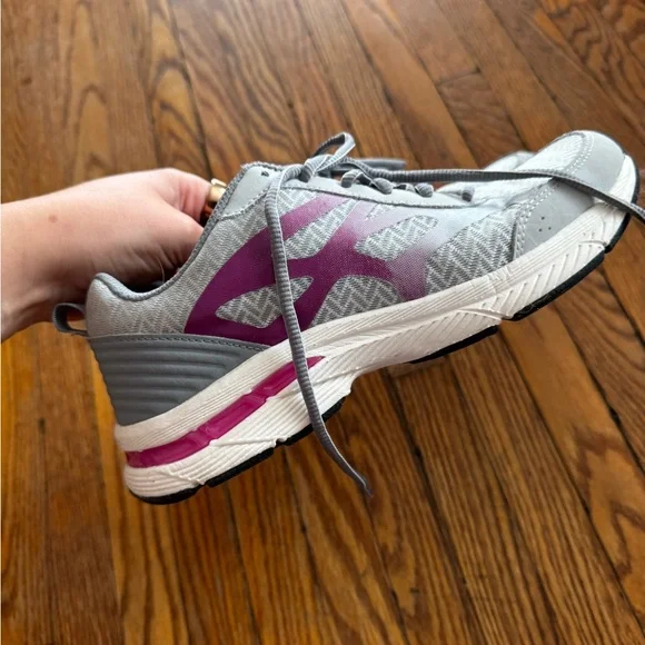 Step up your workout with these stylish gray and purple athletic shoes. Designed for comfort and performance.