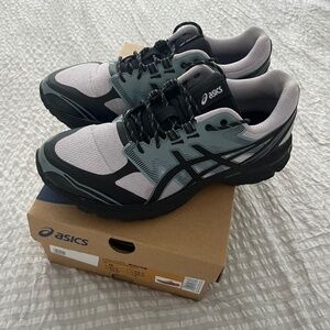 Slightly worn (8.5/10 condition) ASICS Gel-Terrain in blue/black. Size 6.5 men’s or 8 women’s. Recycled the box when moving but will ship in a different ASICS box.