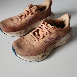 Selling ASICS | Women's NOVABLAST 4 Running Shoes Sneakers Faded Orange Sz 6. Some wear on the heels interior as shown