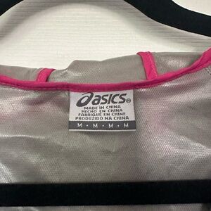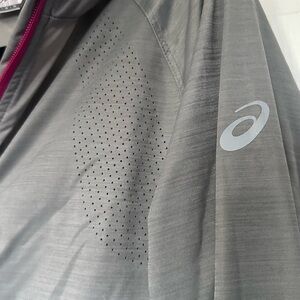 #ASICS #ASICSJacket #RunningJacket #Windbreaker #LightweightJacket #Activewear #GrayHeatherJacket #PinkTrim #WomensFitness #OutdoorRunning #MeshJacket #ReflectiveJacket #AthleisureStyle #WomensActivewear
