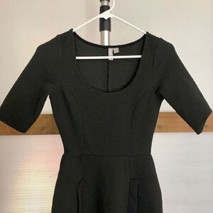 Asos Black Textured Short Sleeve Scoop Neck Fit & Flare Dress Sz 2