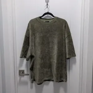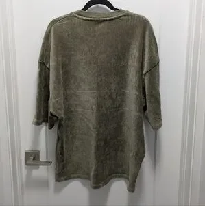 This olive green soft corduroy top is great for yourself or your partner! Fabric is soft to the touch, and has a nice oversized fit for comfort.