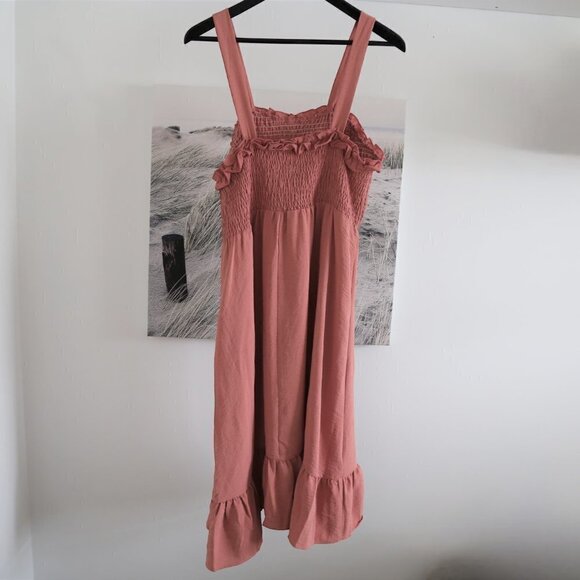 ASOS Curve Barbie Shirred Ruffle Hem Textured Cami Dusty Pink Dress Size 1XL