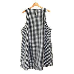 Stylish checkered mini dress. Sleeveless design. Perfect for casual outings.