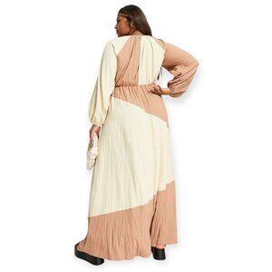 Elevate your wardrobe with this ASOS Curve colourblock maxi dress, combining mocha and natural hues for a chic look. Perfect for various occasions, this new with tags dress is designed for style and comfort.