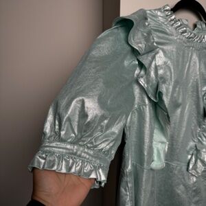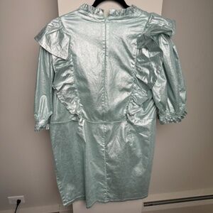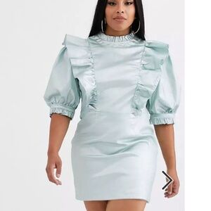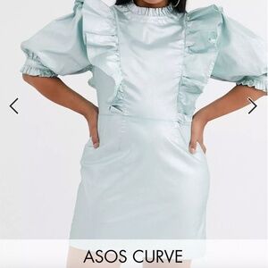 ASOS DESIGN Curve denim metallic dress with high neck and frill detail