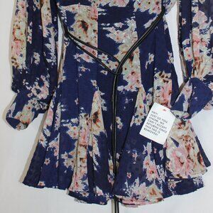 ASOS DESIGN Curve high neck pleated jacquard mini floral dress with godet detail in floral print lined long sleeve size 4; The belt is not original 100% polyester ; Gently used like new condition