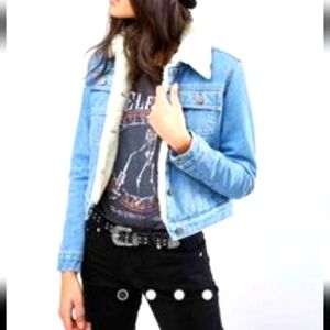 ASOS DESIGN Denim Jacket with Borg collar size 6