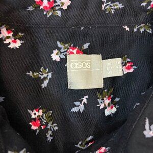 ASOS DESIGN Heavy Denim Boiled Cotton in Black White Floral Print Jumpsuit sz 10