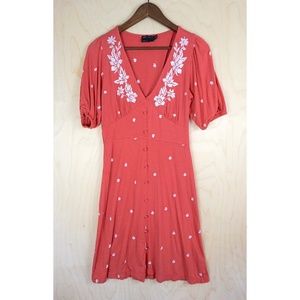 ASOS DESIGN mini tea dress with flower embroidery in "Rose". In excellent condition.