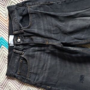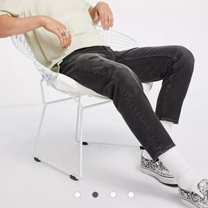 ASOS DESIGN classic rigid jeans in washed black with abrasions w 30" L 32"