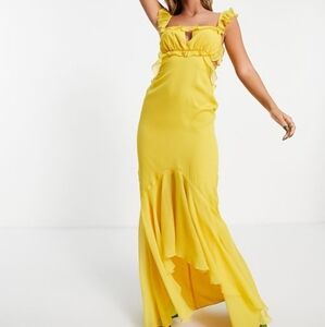 ASOS DESIGN soft maxi dress with ruffle detail in yellow size small
