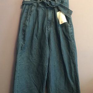 Denim culottes with belt at waist. Purchased from ASOS. Never worn, tags still intact, perfect condition. Size 24 waist, would fit size 25 waist also.