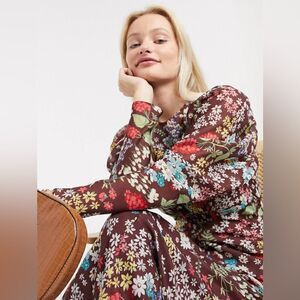 ASOS Design Brown Maxi Dress w/ Puff Sleeves in Vintage Floral Pattern