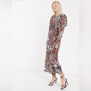 ASOS Design Brown Maxi Dress w/ Puff Sleeves in Vintage Floral Pattern