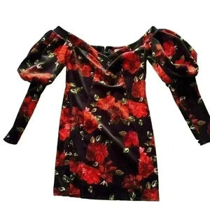 ASOS Design Off The Shoulder Floral Bonded Velvet Mini Dress size 6