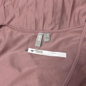 ASOS Dress Simply Be Pleated Kimono Sleeve Deep V Neck Midi Skater Rose Pink